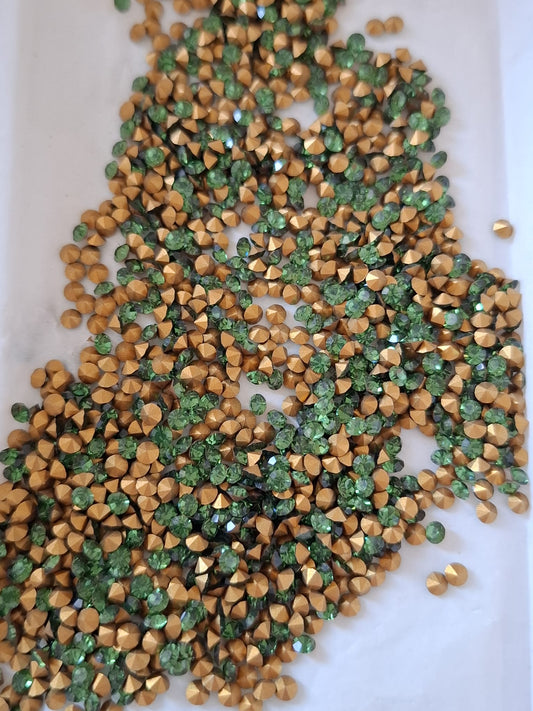 Swarovski® Chaton Vintage Green Turmaline Gold Foiled PP24