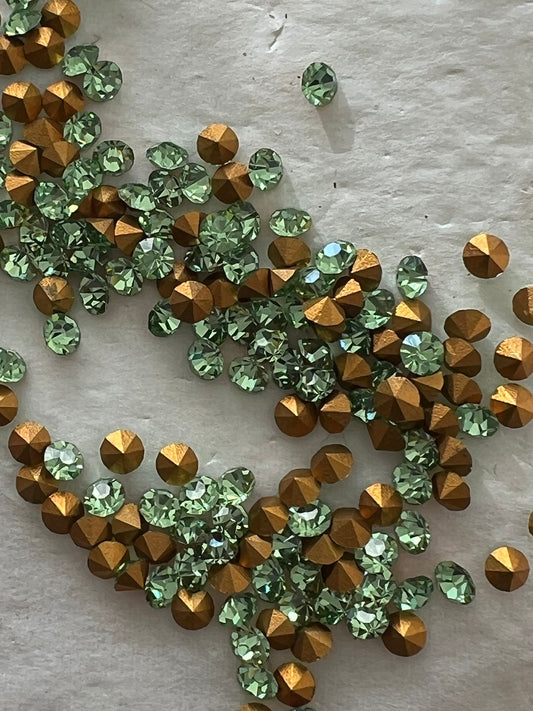 Swarovski® Chaton Vintage Peridot Gold Foiled PP24
