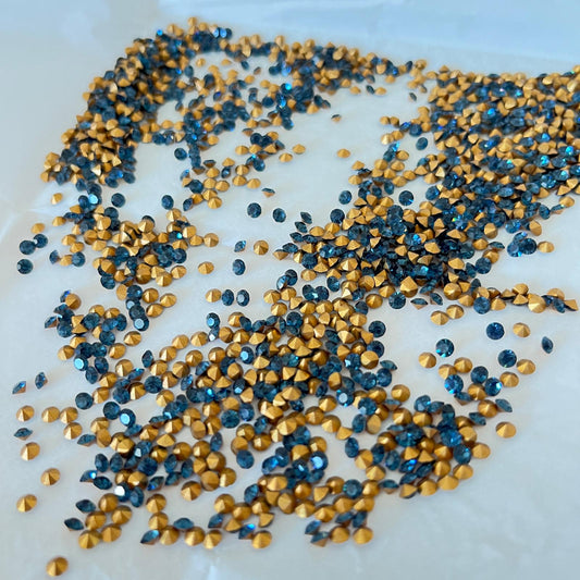 Swarovski® Chaton Vintage Capri Blue Gold Foiled PP24