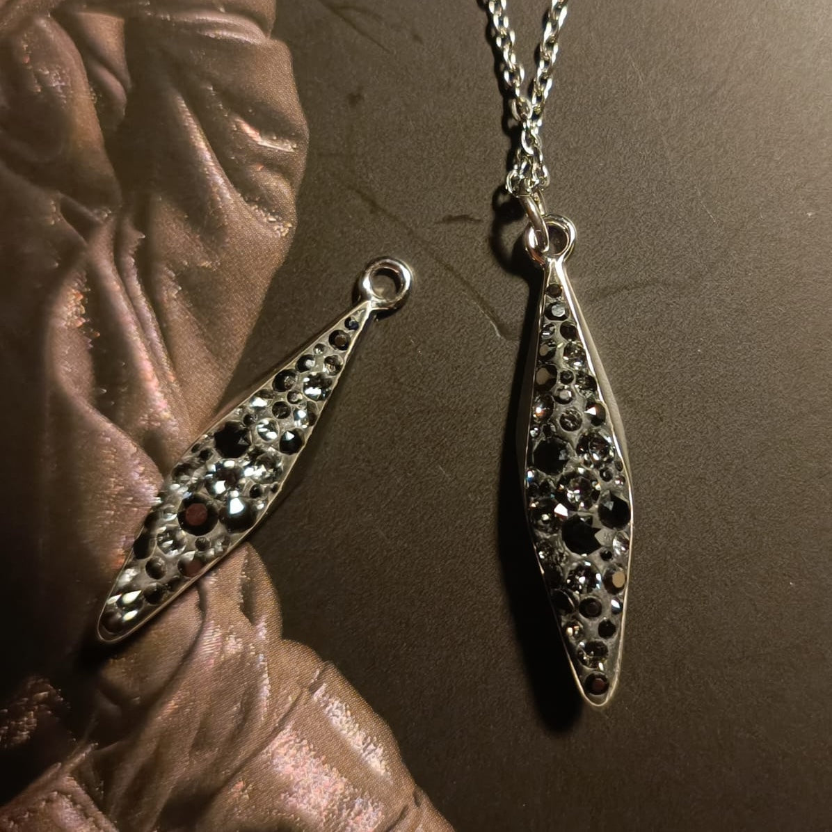 Swarovski® Pavé Anhänger Rhombus Hematite Silver Night/Silver 20mm
